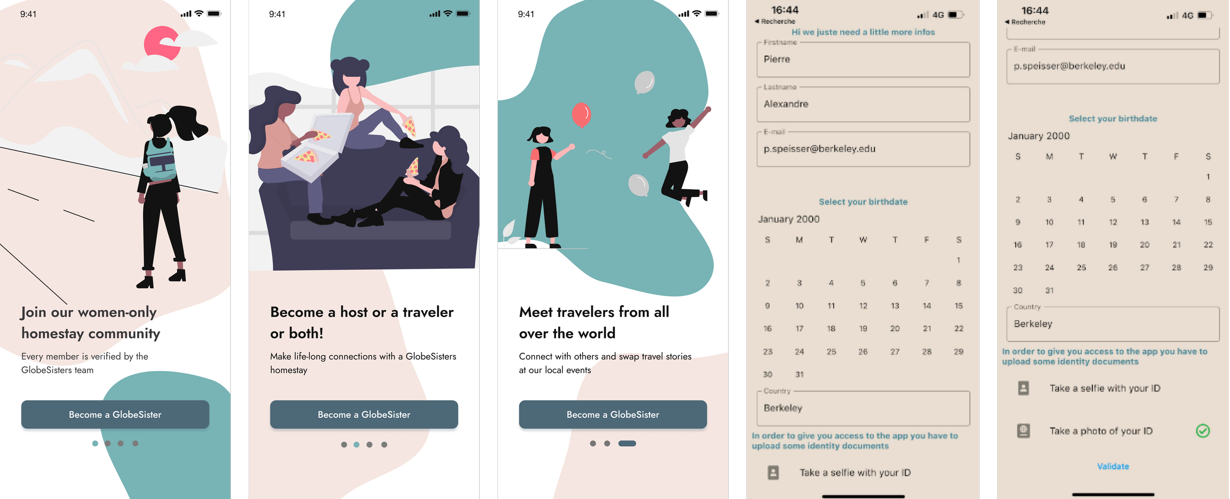 The current onboarding experience is very limited. From the usability testing, I gathered that after onboarding, users still have a vague understanding of what GlobeSisters is truly about. Due to this, it’s not possible for users to interact with the app confidently or to feel secure giving the app their confidential information.